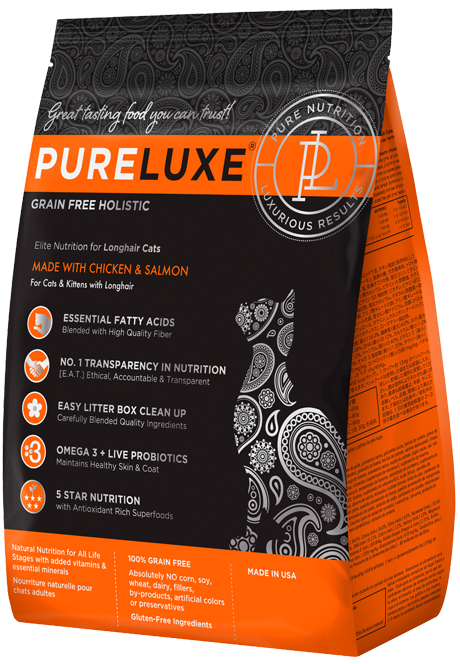 PureLUXE Longhair Cat Food is formulated to meet the nutrient levels established by the AAFCO Cat Food Nutrient Profiles for all life stages.