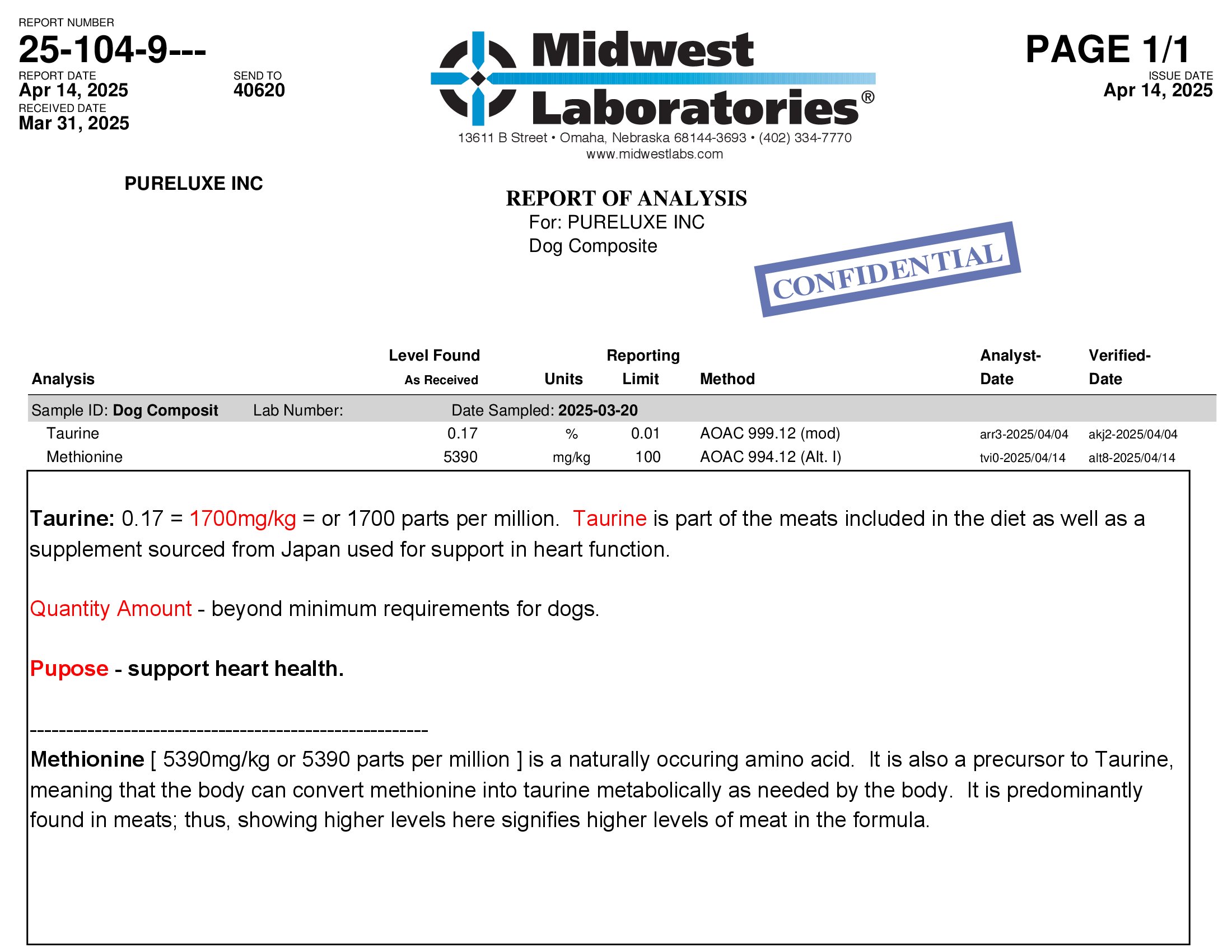 Taurine.Methionine Dog Composit